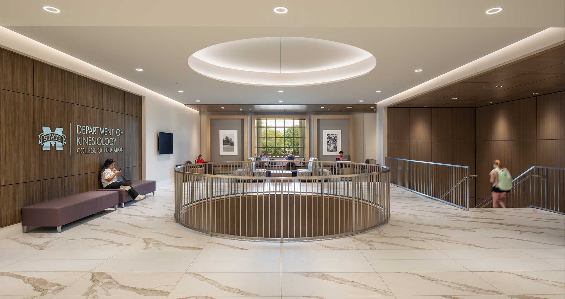 A collaborative vision by EGH Architects, PA and Dale Partners Architects, PA and constructed by AnderCorp, this facility brings together the Department of Kinesiology—one of MSU’s largest academic programs—with the Mississippi Institute on Disabilities and its Autism & Developmental Disabilities Clinic, uniting education, research, community service, and real-world impact under one roof.